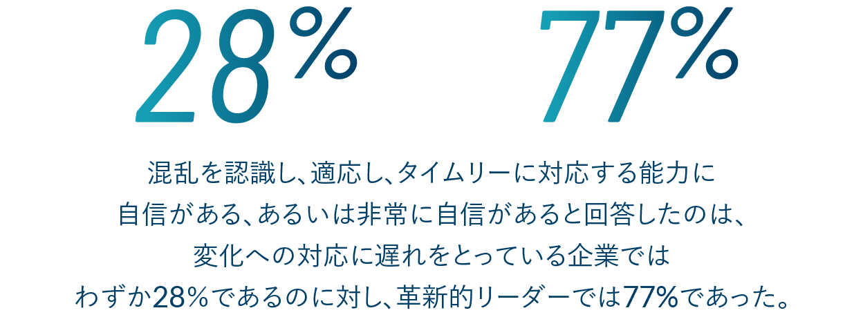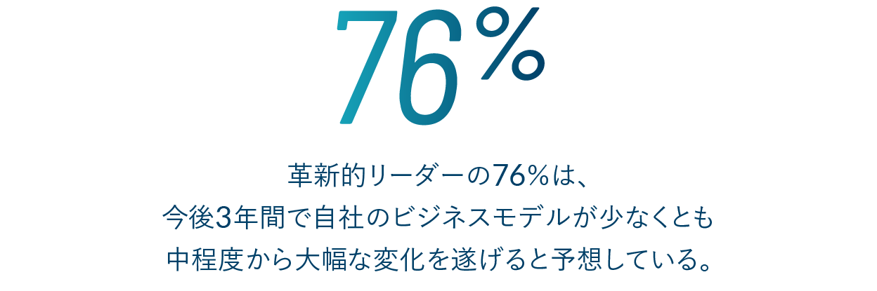 No Audio ⏸ 革新的リーダーは世界を異なった視点で見る グローバル調査の結果、革新的リーダーは、ダイナミックに進化するビジネス環境の中で変化を受け入れる準備が整っていることが明らかになった。 序文 主な発見事項 重要な問い 調査について はじめに 1 min read 革新的な変化が起きており、今後さらに加速するでしょう。あなたの組織は、この瞬間をつかむ準備ができているでしょうか。 このメッセージは、第2回目となるグローバル・ボード・ガバナンス調査の結果に繰り返し現れます。1,800人以上の取締役および経営幹部を対象としたこのグローバル調査結果から、自らを革新的リーダーであると考える組織は、破壊されるリスクにさらされていると考える組織と比較して、変化するビジネス環境の中でチャンスを見出し、異なる方法で事業を展開していることが明らかになりました。 フルレポート(英語版) 自社が業界の革新的リーダーであると回答した組織は、わずか15%に過ぎない。 調査から得た主な洞察 変化するビジネスモデル 革新的リーダーの備えは万全 生成AIは試金石 技術革新の進度が示す現実 変化するビジネスモデル 組織のビジネスモデルの半減期は短くなっています。本調査結果によると、全体の4分の3以上の組織が、今後36ヶ月以内に自社のビジネスモデルが中程度から大幅な変化を遂げると予想しています。技術の進歩、地政学的な変化、進化する顧客体験、規制の変更、経済変動、革新的イノベーションなどの市場要因によって、企業は競争力と存在意義を維持するために、これまで以上に頻繁にビジネスモデルを適応させる必要に迫られています。 革新的リーダーの備えは万全 敏捷性や革新的な企業文化から、企業を混乱させる可能性のある外部要因に対する見解に至るまで、革新的リーダーである組織は、世界を異なる視点で見ており、変化を受け入れる準備が整っています。 生成AIは試金石 生成AIに関しては、特に大きなリスクが伴います。これは、革新的リーダーとしての立ち位置によって、ゲームチェンジャーにもなり得れば、極めて深刻なダメージをもたらす可能性もあるためです。ほとんどの革新的リーダーは、生成AIをビジネスチャンスとして捉え、活用していますが、一方、破壊される側にあると考える企業の5社に2社以上は、生成AIをビジネスへの大きな脅威と捉えています。 技術革新の進度が示す現実 注目すべきは、調査回答者全員が、所属する組織が革新的リーダーであるか否かにかかわらず、自社の戦略やビジネスモデルを揺るがす外部要因として、「テクノロジー進化の加速」を最も重要な懸念事項として評価していることです。 Image 取締役や経営幹部にとって重要な問い 本調査の主要な示唆に基づき、競争環境、潜在的なディスラプター(革新的な存在)、自社の革新におけるポジショニングを評価する際に、取締役や経営幹部が検討すべき質問を以下に提示します。 戦略とビジネスモデル + 本当に顧客中心の組織でしょうか。 例えば、顧客体験の向上に十分に注力しているでしょうか。また、事業モデルとその根幹となるプロセスの妥当性を持続させ、顧客の嗜好や期待を優先する上での社内の障壁を特定し克服する際に、顧客への価値提供をすべての意思決定の中心に据えているでしょうか。業界や市場で、私たちの戦略やビジネスモデルに影響を与える可能性のある革新的または破壊的な事象を特定していますか。これらのシナリオがビジネスに与える影響をシミュレーションし、その影響の程度を理解し、最適な対策を講じるために、短期的に準備すべき行動を含めて検討していますか。戦略の根底にある最も重要な前提を理解し、その前提を無効にしてしまう可能性のある外的・内的要因をモニタリングしていますか。戦略の基盤となる重要な前提や、破壊的シナリオの継続的な分析に基づいた「重要指標のダッシュボード」や「早期警告アラート」など、早期警戒の仕組みは整備されていますか。 戦略の実行そのものをモニタリングするのと同様に、市場や顧客、経済や競争環境の変化をダッシュボードでモニタリングしていますか。 革新的なトレンドや事象に対応するため、あるいは戦略的前提がもはや適切でなくなった場合に必要となる、戦略やビジネスモデルの変更を実行する準備はできていますか。 組織の意思決定プロセスは、迅速で質の高い意思決定を可能とし、俊敏でレジリエンスのある行動をサポートしていますか。 変化に対応し、ビジネスモデルと戦略を適切に調整するために必要なリーダーシップ、人材、スキルがありますか。 不足している場合、どのようにギャップを埋め、レジリエントで多様なスキル、視点、そして変化への対応力を備えた人材を構築し、維持しますか。 中核的なスキルとしてデジタル能力を定期的に評価していますか。 顧客嗜好、競合他社の行動、業務改善に関するデータに基づいた意思決定を行うために、顧客、